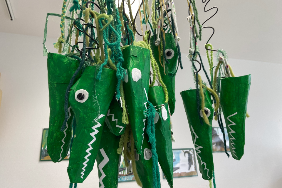 Auf einem der Gänge treffe ich die Schulleitung, die mich lachend begrüsst und in den Kindergarten begleitet. Ein Gruppe vier- bis siebenjähriger Kinder arbeitet mit Zahl- und Mengenbegriffen, einige mit farbigen Gegenständen, andere in einem Heft oder auf einem iPad. Zwei Lehrerinnen und ein pensionierter Lehrer, der assistiert, stehen bei Fragen zur Verfügung, so dass niemand auf Hilfe warten muss. Die meisten Kinder holen sich allerdings zuerst bei ihren Kolleginnen und Kollegen Unterstützung, bevor sie sich an die Erwachsenen wenden.